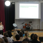 Dazu hatte das MCG in Zusammenarbeit mit dem Kommunalen Integrationszentrum des Rhein-Kreis-Neuss diverse Gäste eingeladen. Stipendiaten diverser Stiftungen stellten in kurzen Vorträgen die Leitlinien ihrer Stiftungen und das Bewerbungsverfahren vor. Anschließend nutzten die zahlreichen Schülerinnen und Schüler und Eltern die Möglichkeit, sich in kleiner Runde bei Snacks und Getränken mit den Stipendiaten auszutauschen. MCG-Referendar Luca Demirel, der das Deutschland-Stipendium vorstellte, war ein besonders gefragter Gesprächspartner, der sogar seine eigenen Bewerbungsunterlagen als Anschauungsmaterial mitgebracht hatte. Auch Aras Ali, Vertreter des START-Stipendiums für Jugendliche mit Migrationshintergrund, wurde von vielen Interessenten umringt.