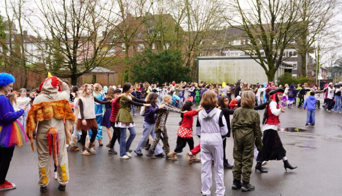 Am 12.02. stand auch das MCG ganz im Zeichen des Karnevals. Schon am Morgen strömten die Schüler:innen in fantasievollen Kostümen in die Schule – von bunten Clowns über Filmheld:innen bis hin zu kreativen Gruppenkostümen war alles vertreten. Auch ausgefallene Eigenkreationen sorgten für staunende Blicke. Die fröhliche Stimmung war in der Annostraße zu spüren, überall wurde gelacht, Musik gehört und gemeinsam getanzt. Viele Klassen dekorierten ihre Räume bunt mit Luftschlangen und Girlanden, was die Karnevalsstimmung noch verstärkte.