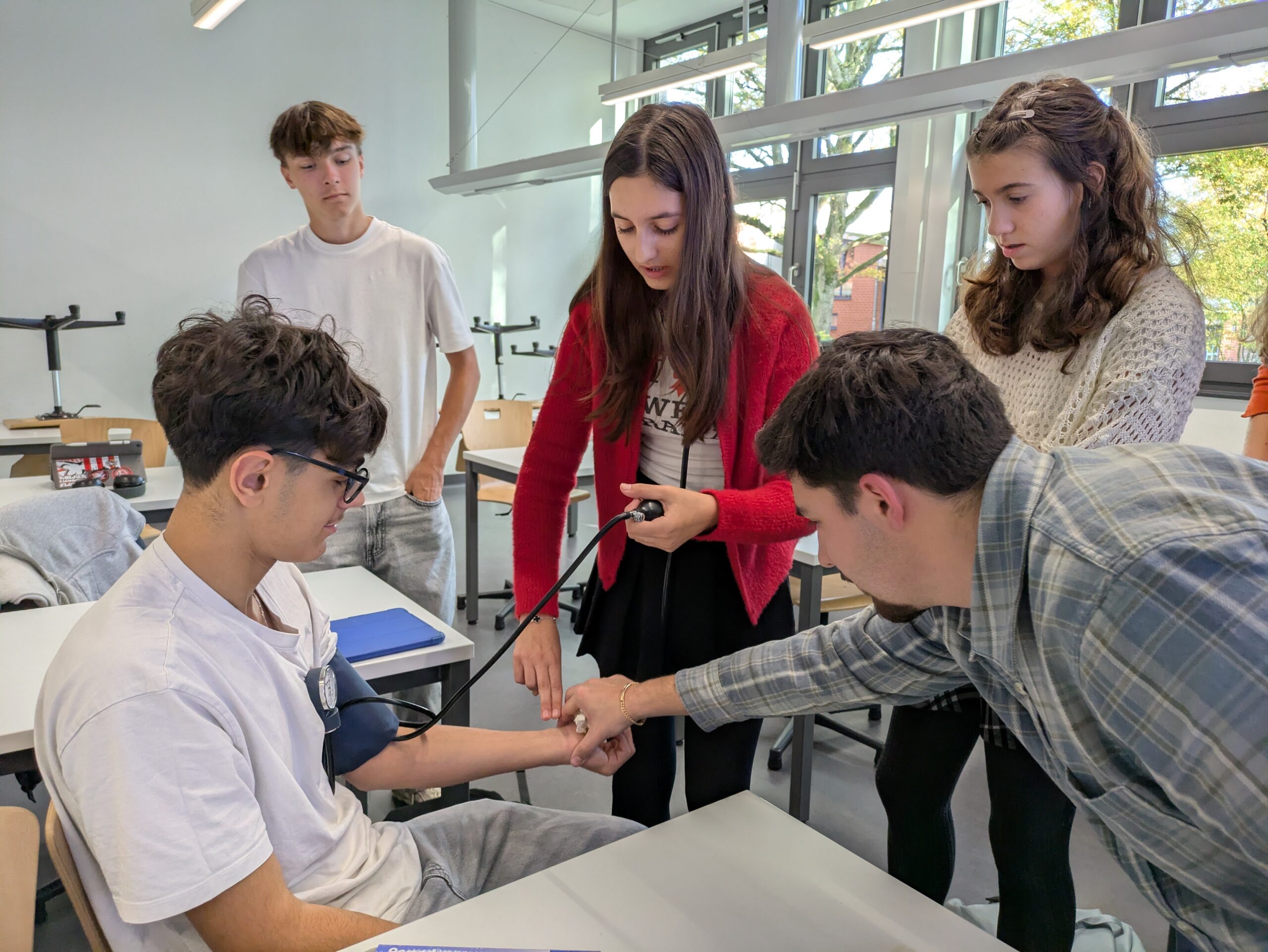 Zunächst wurden grundlegende Techniken wie die Herzdruckmassage sowie die Pulskontrolle und Blutdruckmessung theoretisch sowie praktisch wiederholt.