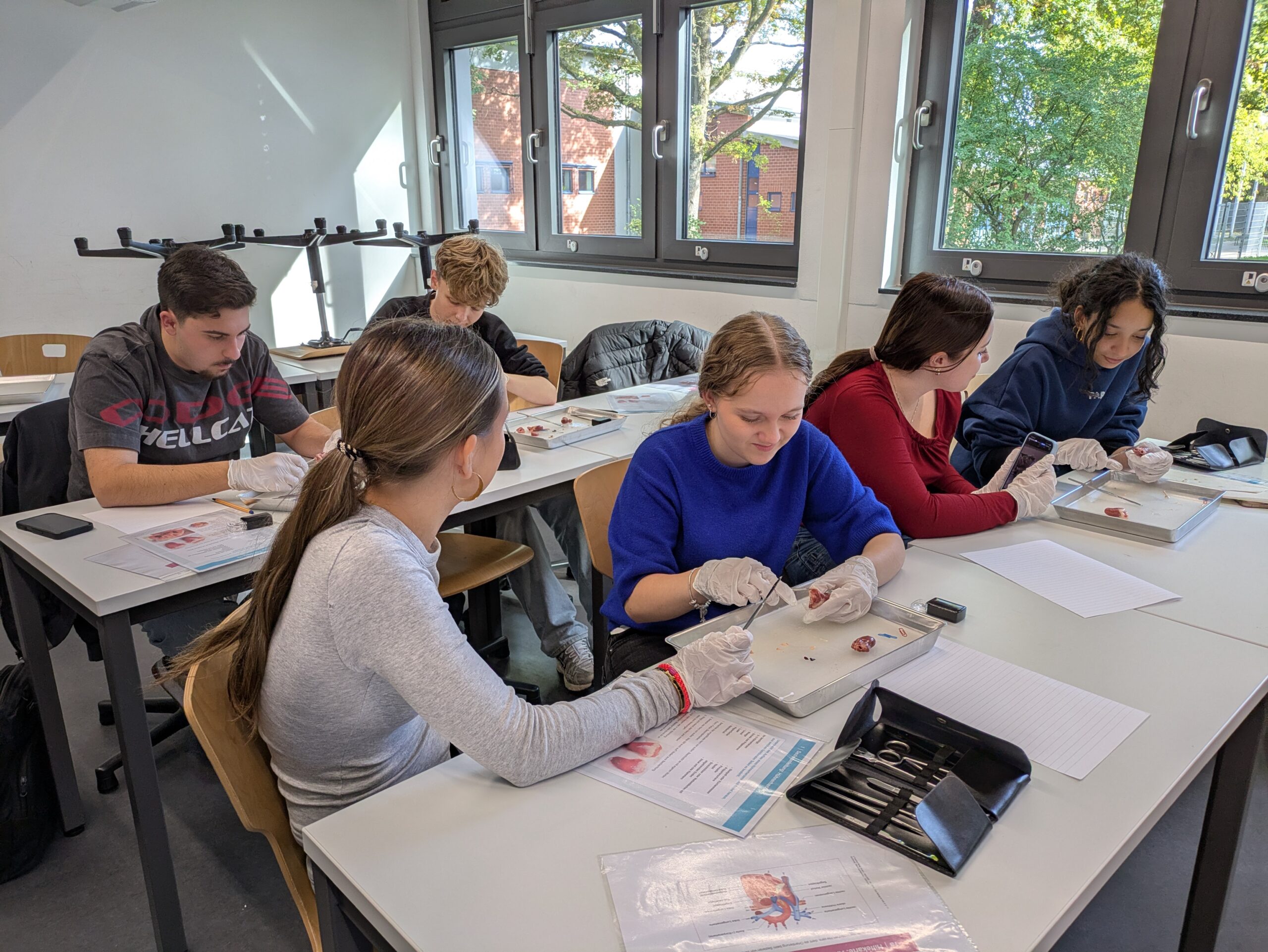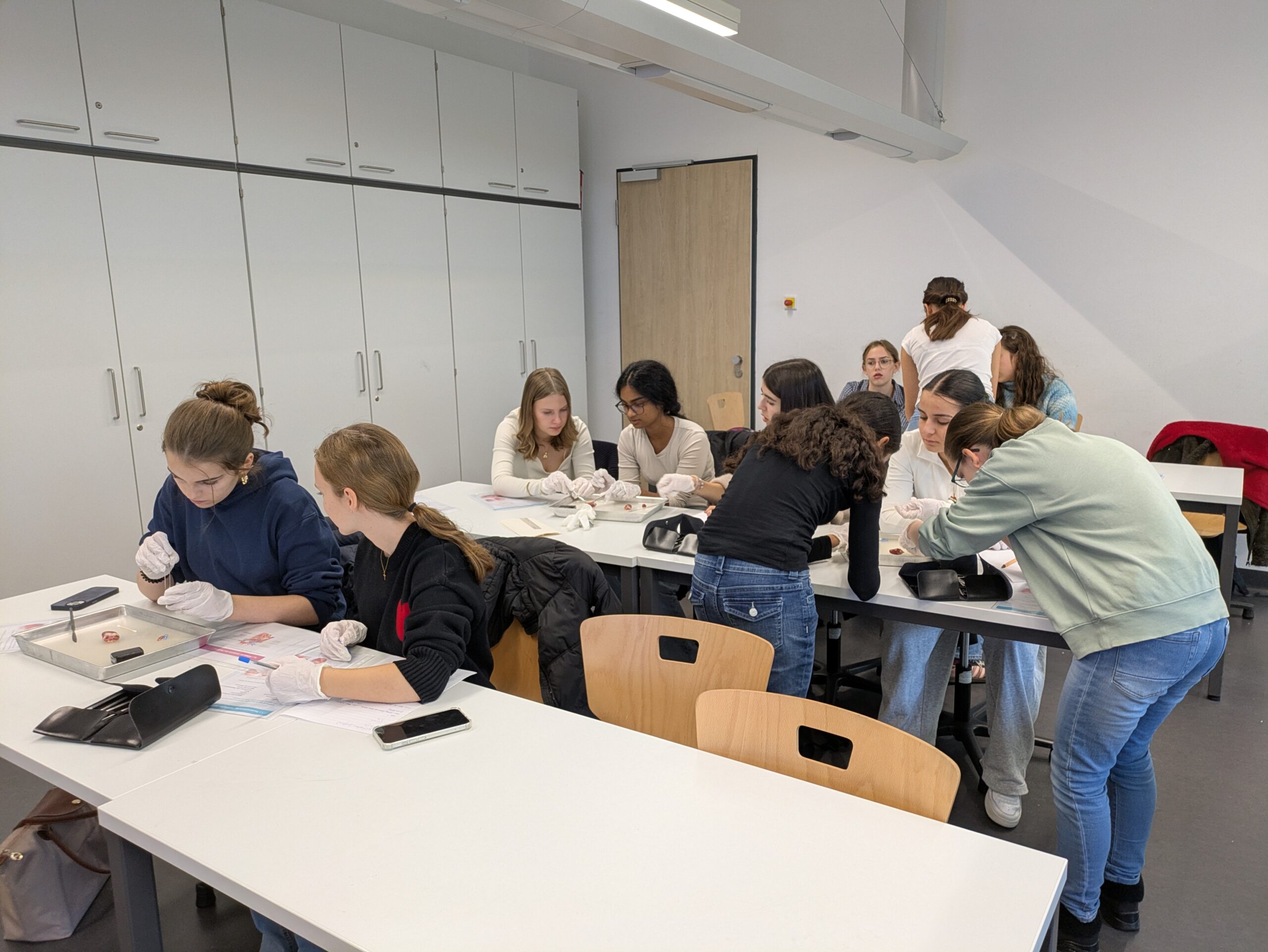In der folgenden Woche hieß es dann: “An die Skalpelle, fertig, los!“. Während der Präparation von Hühnerherzen lernten die Schüler:innen, die verschiedenen Teile des Herzens zu identifizieren und deren Funktionen zu verstehen. Dazu gehörten die Vorhöfe, die Herzkammern sowie die großen Gefäße wie die Lungenvene und die Aorta.