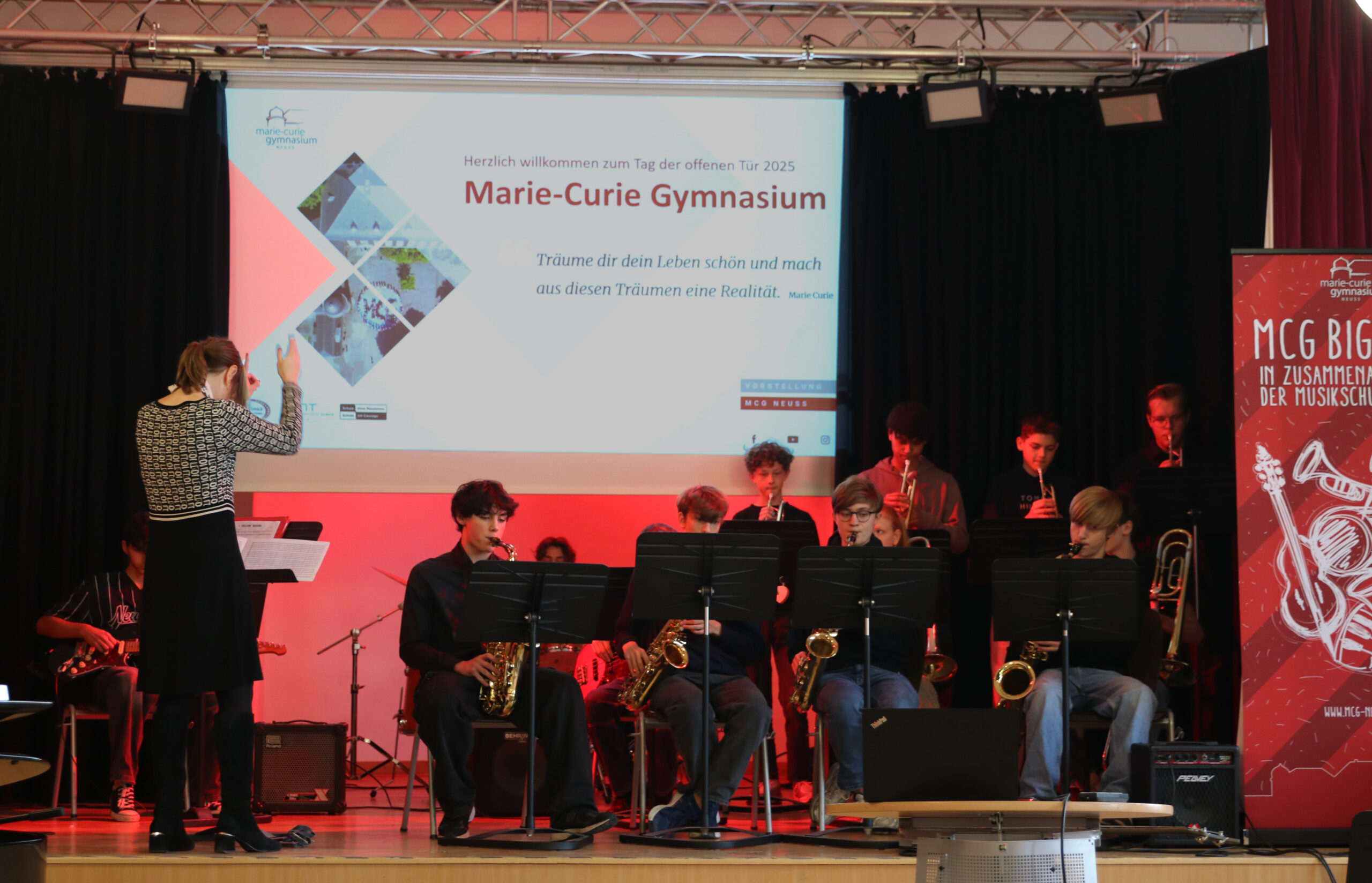 Natürlich führten die Touren auch in das Schulgebäude in der Annostraße, in dem die zukünftigen Schüler:innen ihre ersten beiden Jahre am MCG verbringen. Die Schüler:innen der Erprobungsstufe lernen hier an einem eigenen Standort, der wie die Jostenallee über Sporthalle, naturwissenschaftliche Fachräume, Musik- und Kunsträume, Mensa und Pausenhof verfügt. Zusätzlich gibt es an der Annostraße eine Nachmittagsbetreuung, die den Kindern eine verlässliche Betreuung nach dem Unterricht bietet. So können sie ihre schulische Laufbahn nach der Grundschule in einem vertrauten und behüteten Umfeld fortsetzen.