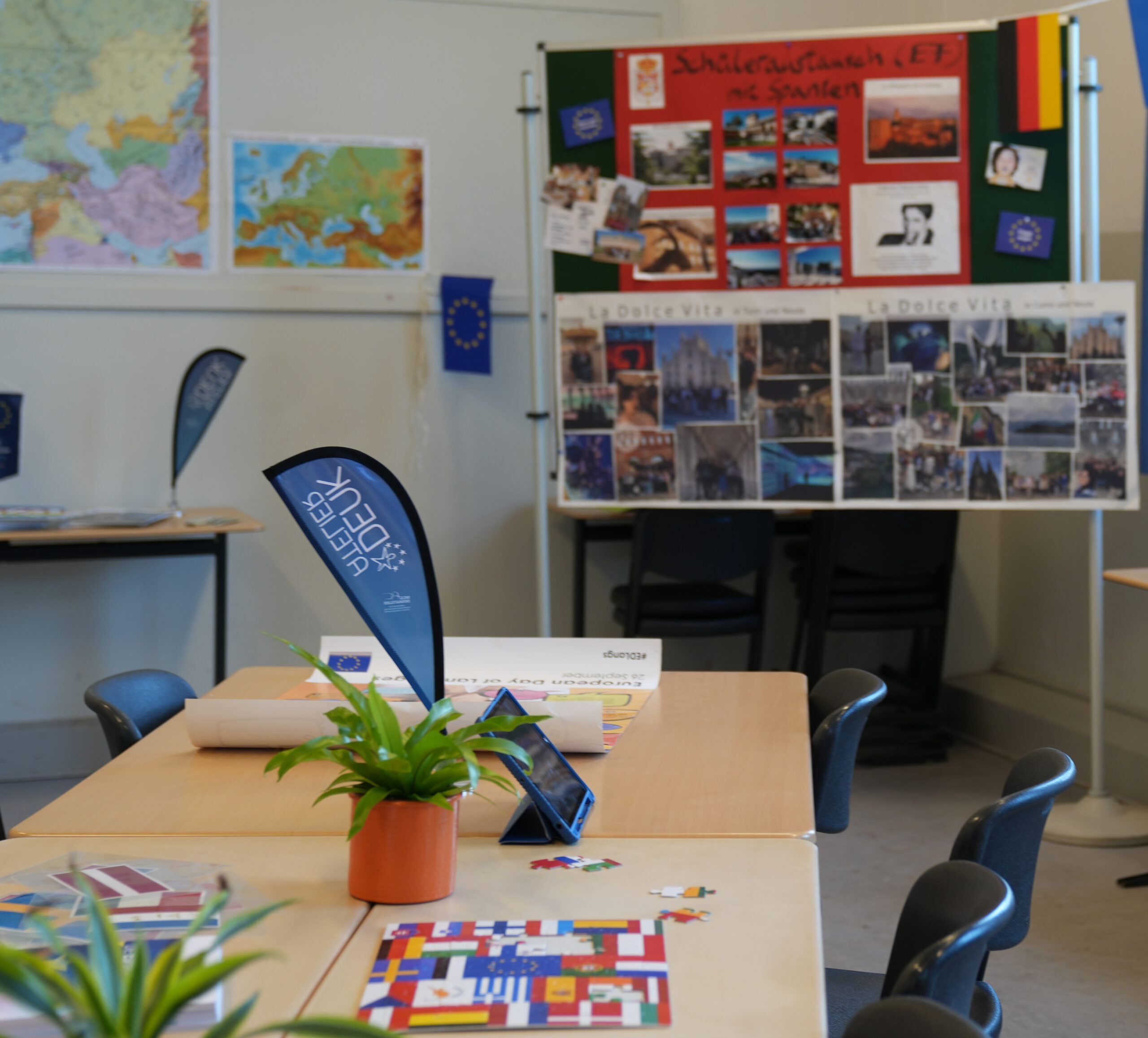 Bereits am Vormittag wurden die Gäste von unseren Schülerlotsen herzlich empfangen, die sie auf spannenden Touren durch unsere Schulgebäude begleiteten. Dabei hatten sie die Gelegenheit, die besonderen Angebote unserer Schule kennenzulernen. Neben den Highlights wie dem bilingualen Zweig, dem MINT-Schwerpunkt, der Auszeichnung „Schule ohne Rassismus – Schule mit Courage“ sowie der Doppelqualifikation, einem einzigartigen Merkmal unserer Schule, gab es umfassende Beratungen durch das Oberstufenteam für Schüler:innen, die einen Wechsel in die gymnasiale Oberstufe planen. Auch der Stand des Fördervereins sowie die Informationen zur Zertifizierung als Europaschule stießen auf großes Interesse.